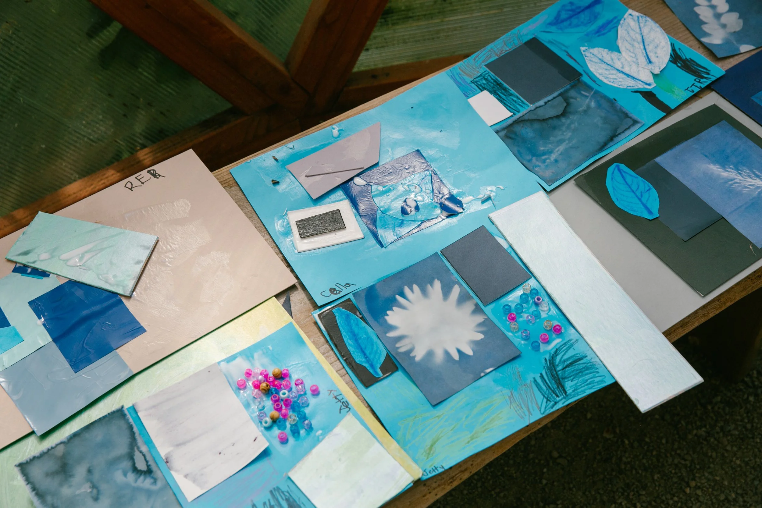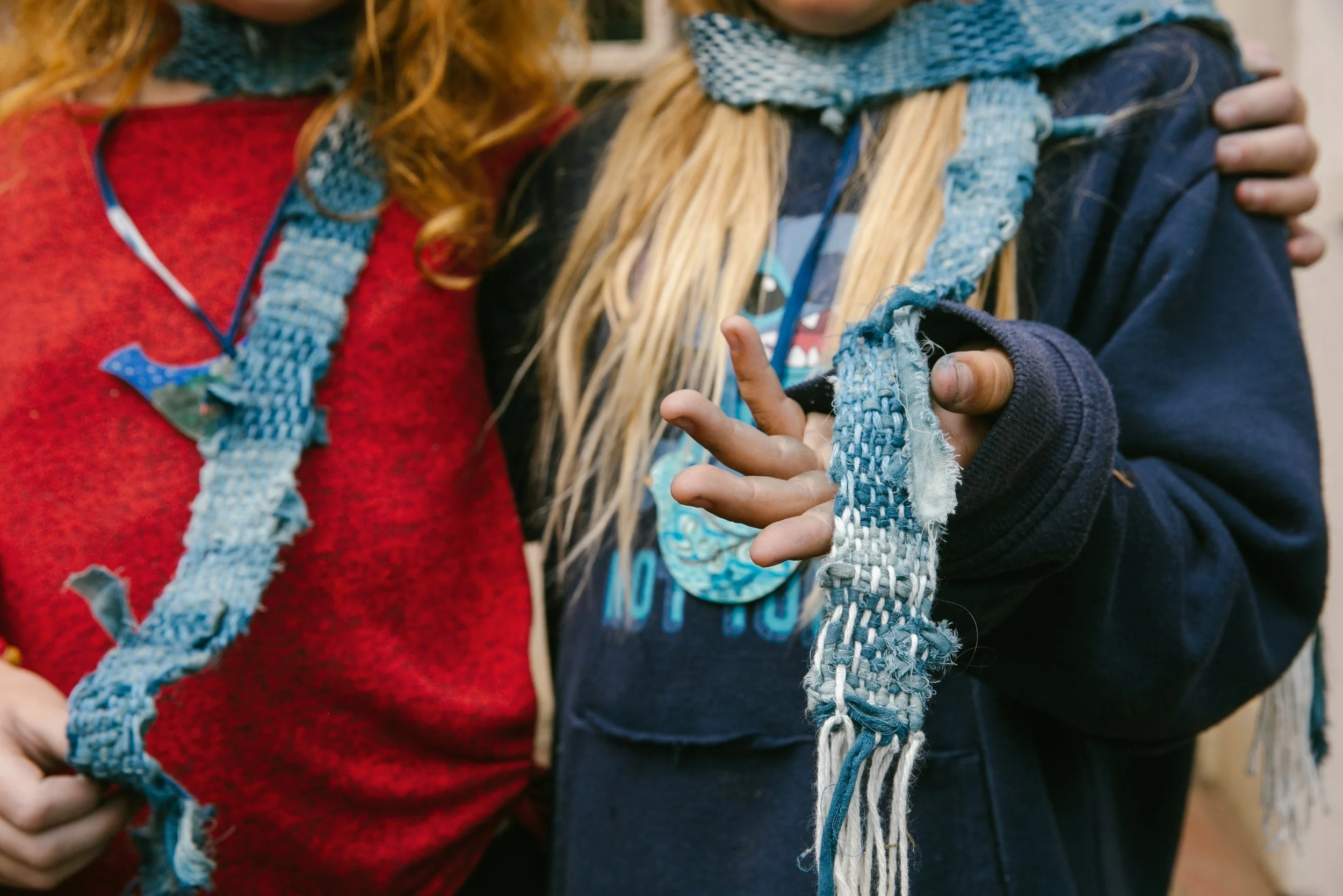 3 full days of camp each with a difference focus and daily beach walks, quiet time, and hands- on guided learning in a small group: Indigo Day(learn patterns in the indigo vat and play with fresh indigo methods), Mixed Media Day(collage, indigo painting on fiber/paper, and more), and Fiber Craft(backstrap weaving from ‘25 pictured)